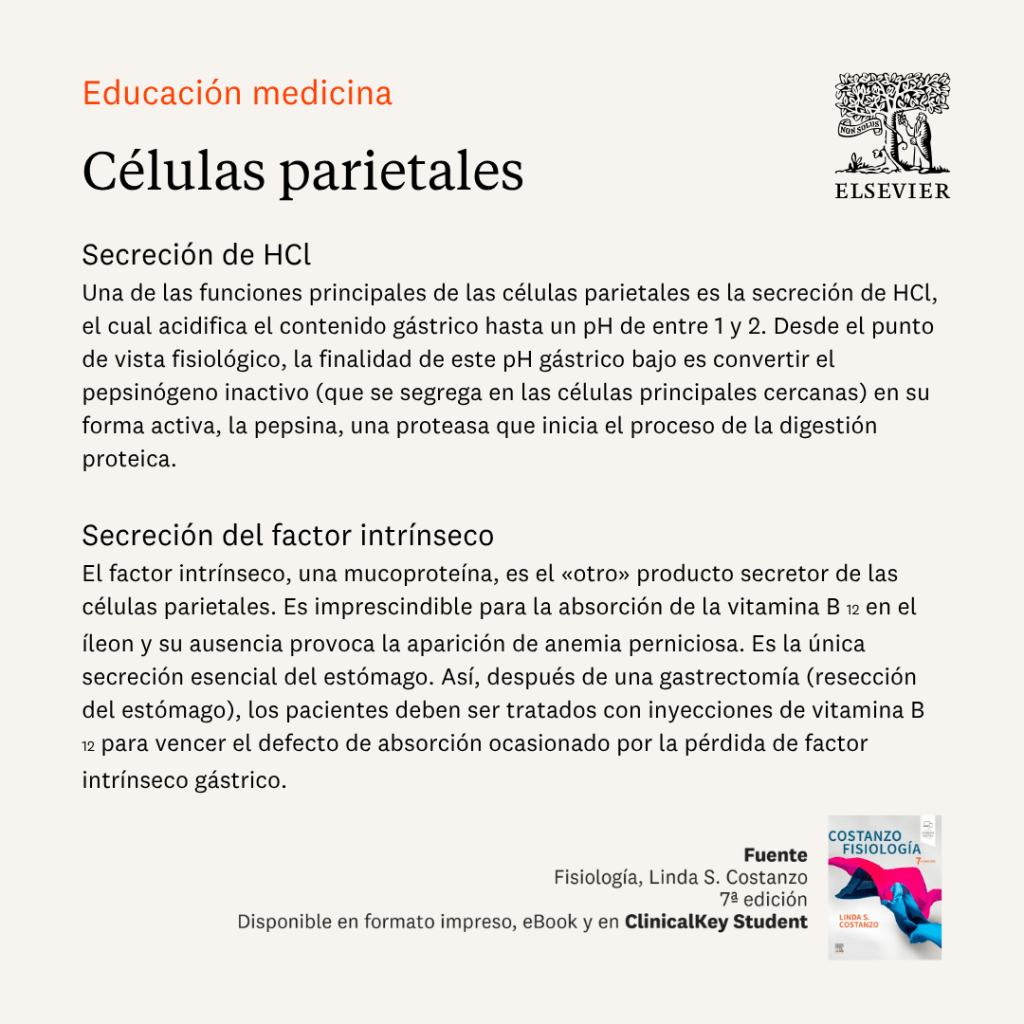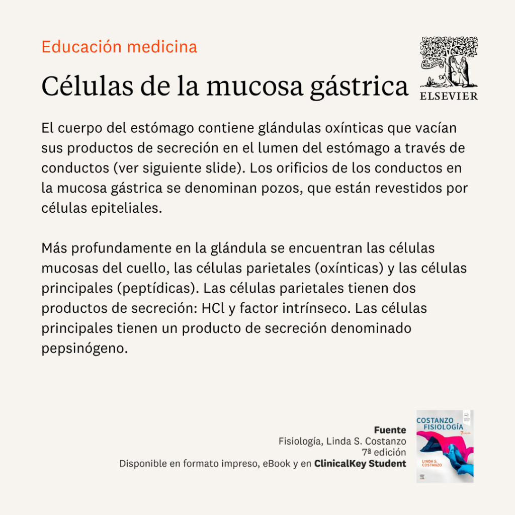 Este proceso y la estructura celular de la mucosa gástrica se explican de forma clara y visual en la siguiente slides que os compartimos. Esta material original está tomado de la 7ª edición del libro Fisiología de Costanzo, un recurso conciso, didáctico y lleno de esquemas y tablas que facilitan la comprensión paso a paso. La obra, dirigida a estudiantes de Medicina, Odontología, Biomedicina y otras carreras de Ciencias de la Salud, incorpora ecuaciones, problemas prácticos, resúmenes y preguntas al final de cada capítulo para reforzar el aprendizaje.