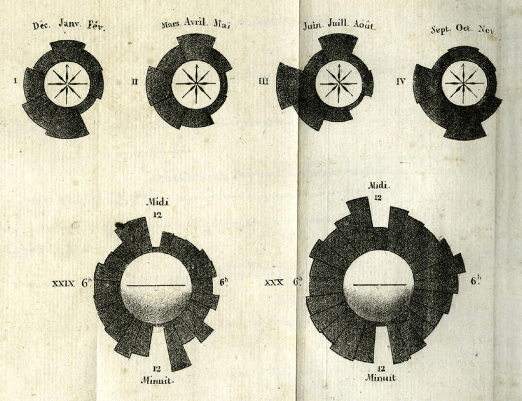 Gráfico de área polar creado por André-Michel Guerry en 1829 3.