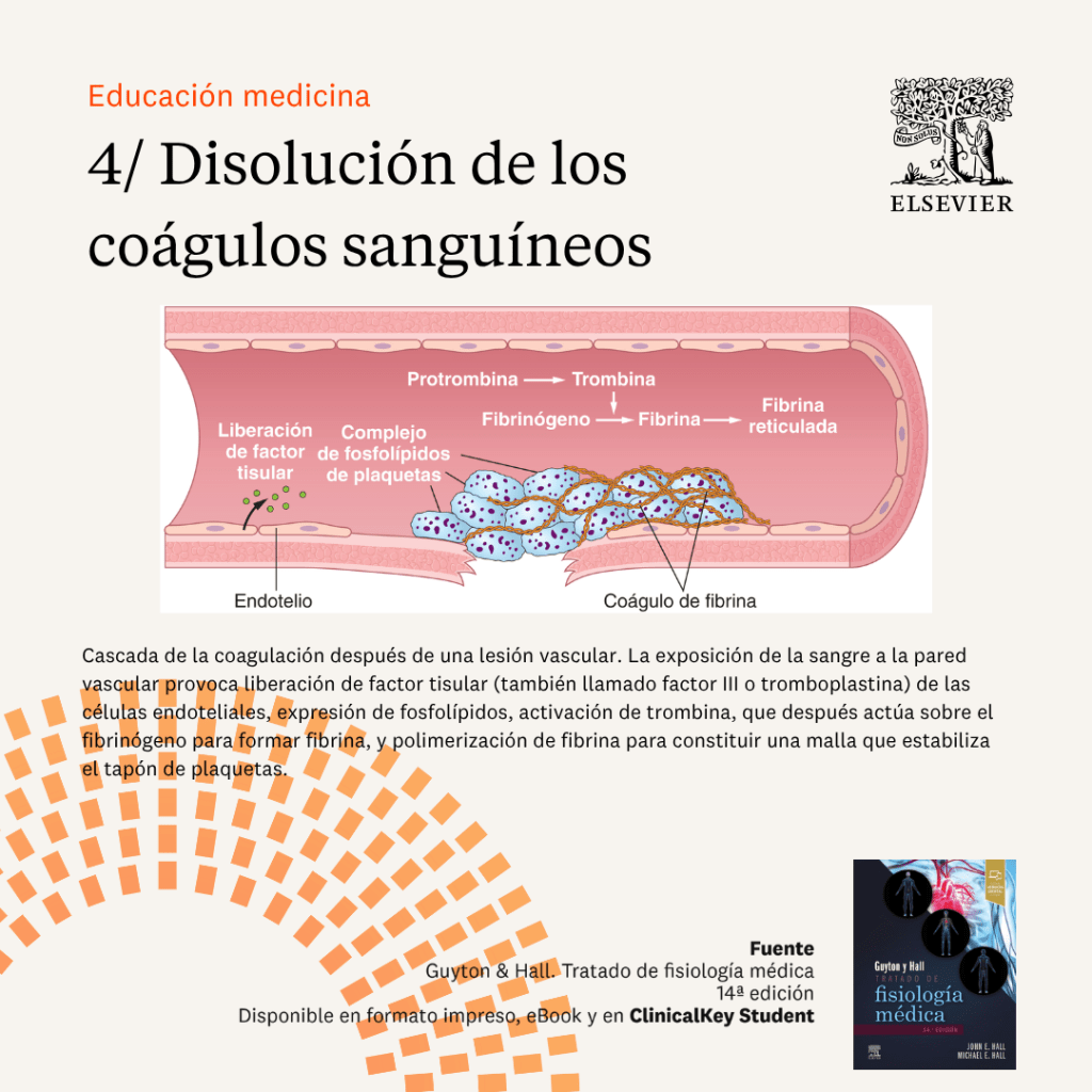 Para entender estos procesos complejos de forma clara y sencilla, hemos creado unos visuales inspirados en la última edición del Tratado de Fisiología Médica de Guyton & Hall. Con más de 1 200 ilustraciones a todo color, cuadros de correlación clínica y capítulos cortos, es la herramienta perfecta para dominar la fisiología, especialmente en temas tan fundamentales como la hemostasia.