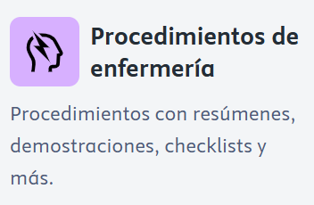 Por otra parte, la herramienta ofrece una parte práctica complementaria: demostración y otros recursos; vista rápida; imágenes y vídeos;checklists y preguntas de autoevaluación. Esta combinación entre teoría y práctica facilita el aprendizaje activo, permite practicar de forma guiada y autoevaluar el progreso, y fortalece la capacidad de ejecutar procedimientos con confianza, seguridad del paciente y adherencia a estándares de calidad en enfermería, todo dentro de un único entorno de aprendizaje.