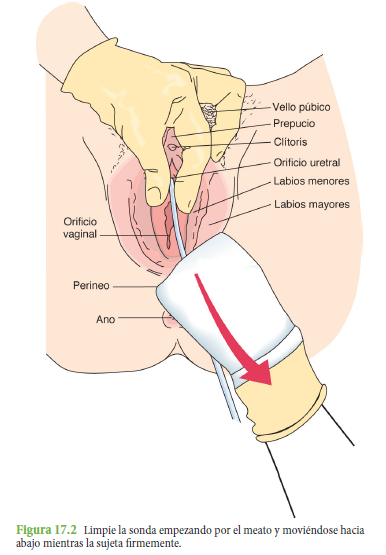 ■ Colabore con la enfermera especializada en heridas, ostomías y continencia (WOCN) para medidas específicas de cuidado de la piel si el paciente presenta irritación de la piel perineal por la sonda, por el adhesivo del dispositivo de fijación de la sonda o por el drenaje alrededor de la inserción de la sonda.